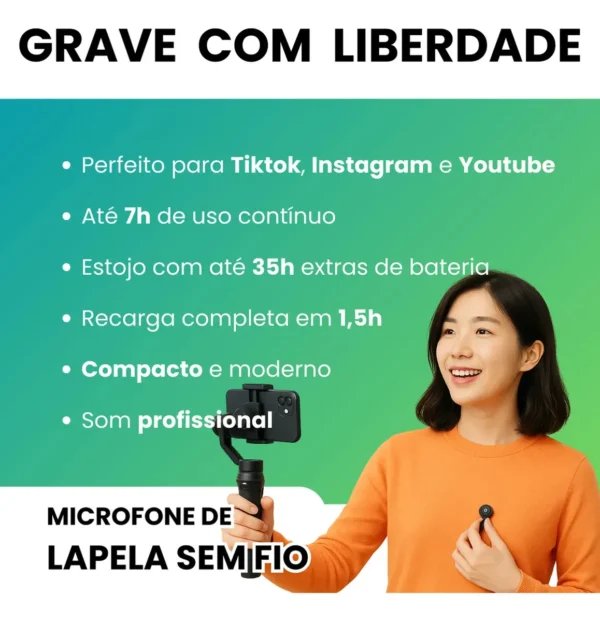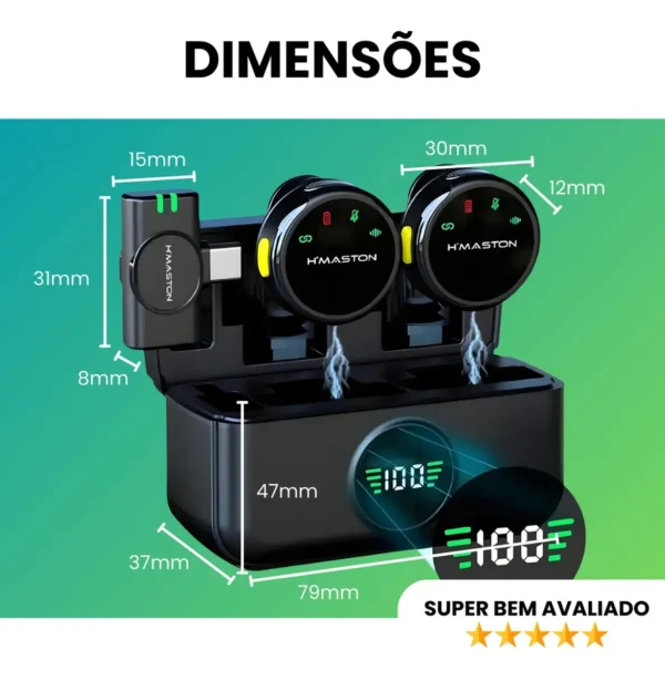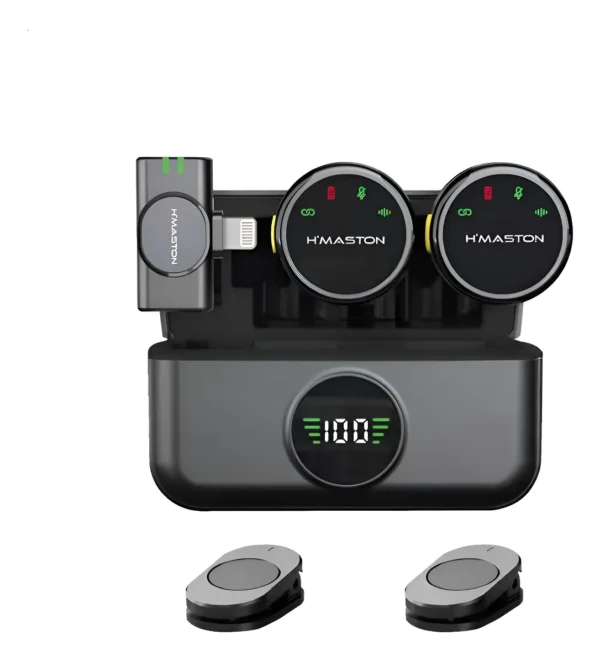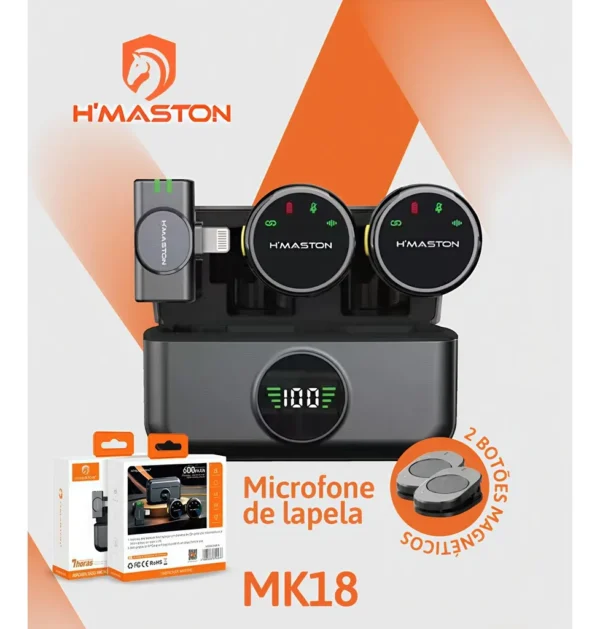 O HMaston MK18 é um microfone de lapela sem fio profissional, desenvolvido para quem busca praticidade e alta qualidade de áudio. Com tecnologia de cancelamento de ruído, ele captura o som com clareza mesmo em ambientes movimentados. Seu design com clipe magnético removível oferece versatilidade e discrição, permitindo fixação rápida em qualquer roupa. A bateria oferece autonomia de 7 a 8 horas de uso contínuo, e o estojo de carregamento garante recargas convenientes. Compatível com iPhones e smartphones com entrada Tipo-C, o MK18 é ideal para gravações, entrevistas e transmissões ao vivo com áudio nítido e estável.