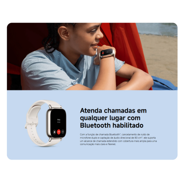 - Aplicativo: O relógio é acompanhado de um aplicativo para smartphone (Mi Fitness) que permite personalizar as configurações, analisar os dados de saúde e conectar-se a outros aplicativos de fitness.